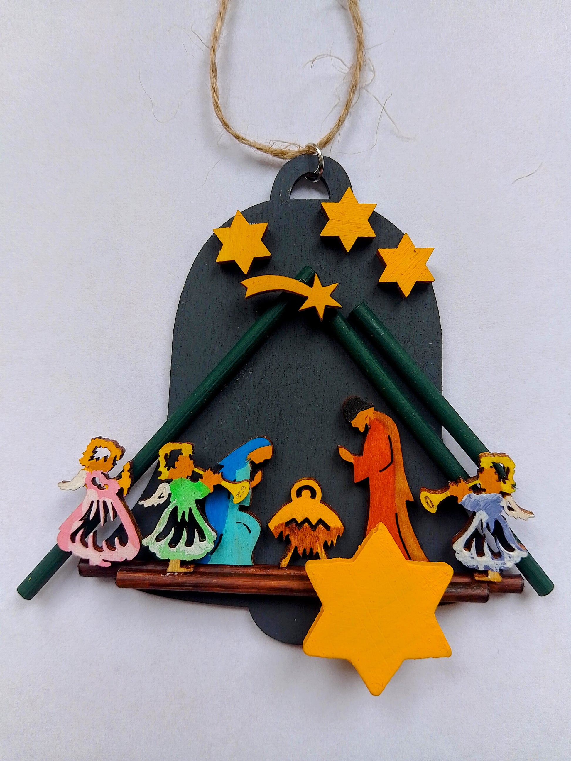Diese kunstvolle Weihnachtsglocke zeigt in filigraner Darstellung die Geburt Christi im Stall – ein zeitloses Motiv der christlichen Tradition. Ergänzt wird die Szene durch einen detailreich gestalteten Engel mit Posaune, der die frohe Botschaft verkündet. Ein Sammlerstück von besonderer theologischer Tiefe und handwerklicher Präzision für anspruchsvolle Weihnachtsdekorationen.